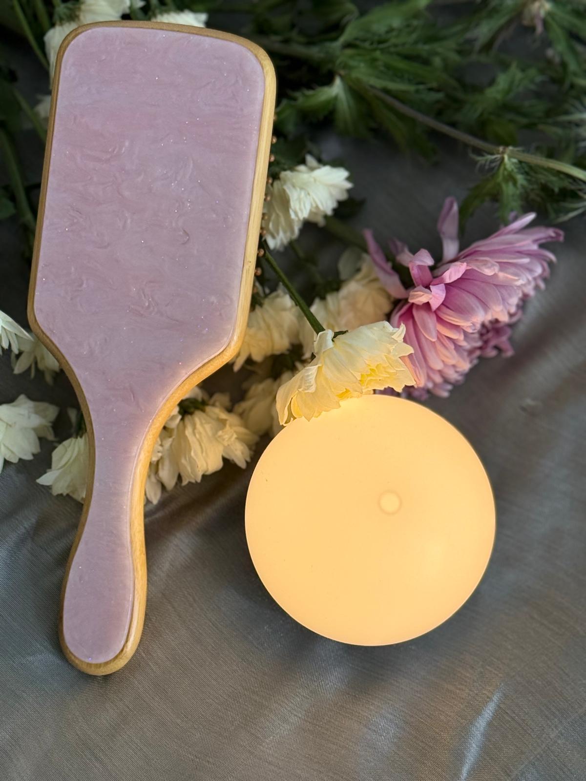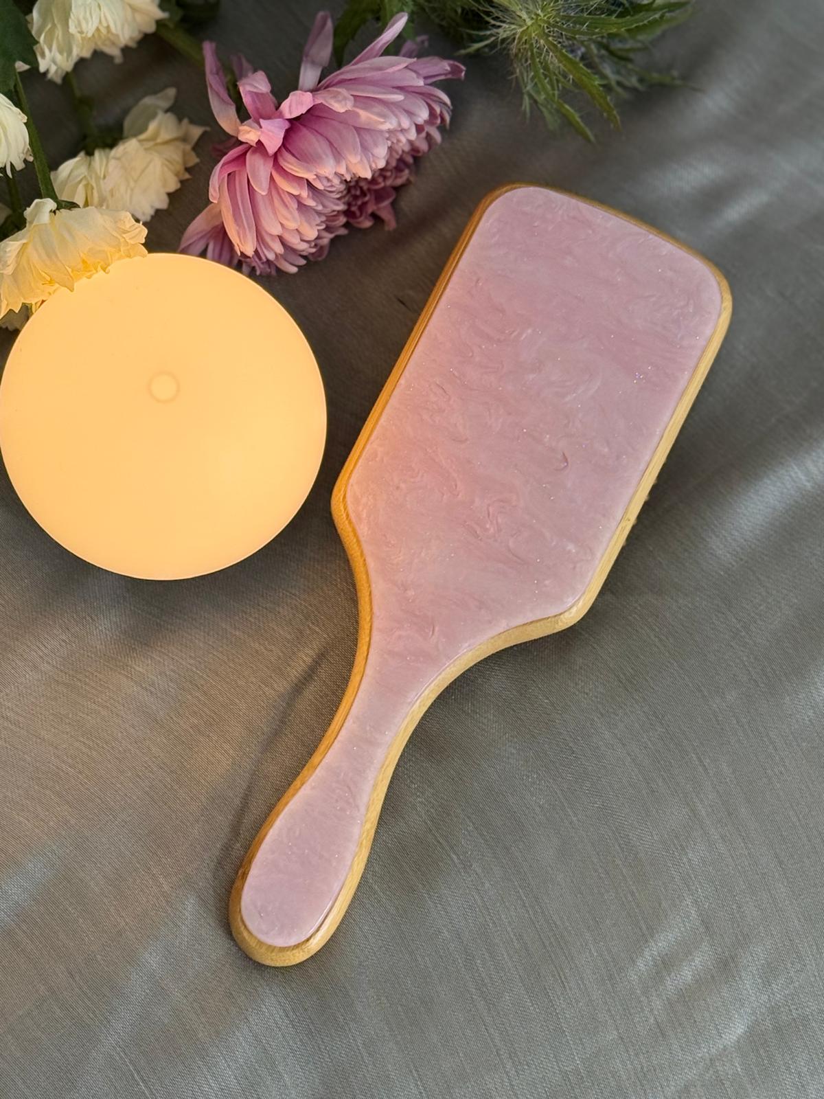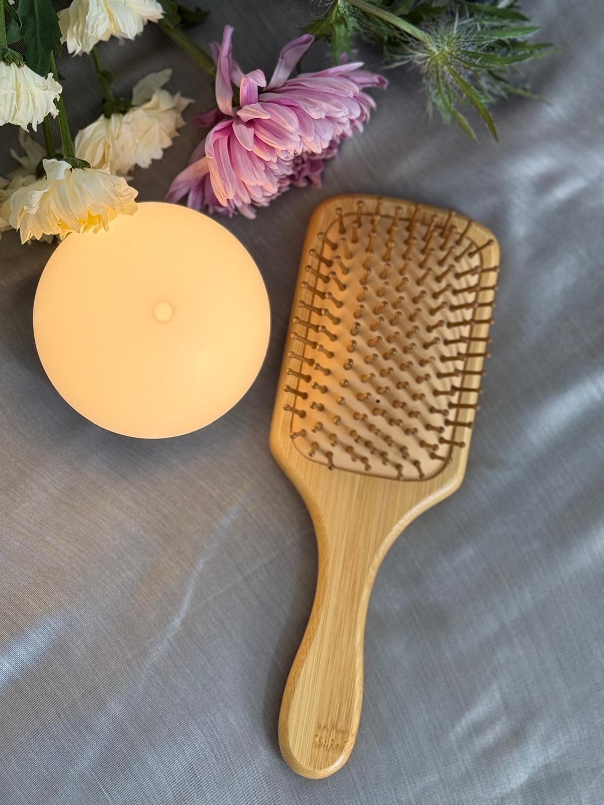 Handcrafted to perfection, this paddle brush glides effortlessly through all hair types, detangling without pulling while the smooth wooden design massages the scalp. The gentle bristles distribute natural oils for healthier, shinier hair, bringing calm beauty to every stroke like the soft glow of dusk on polished silk.
