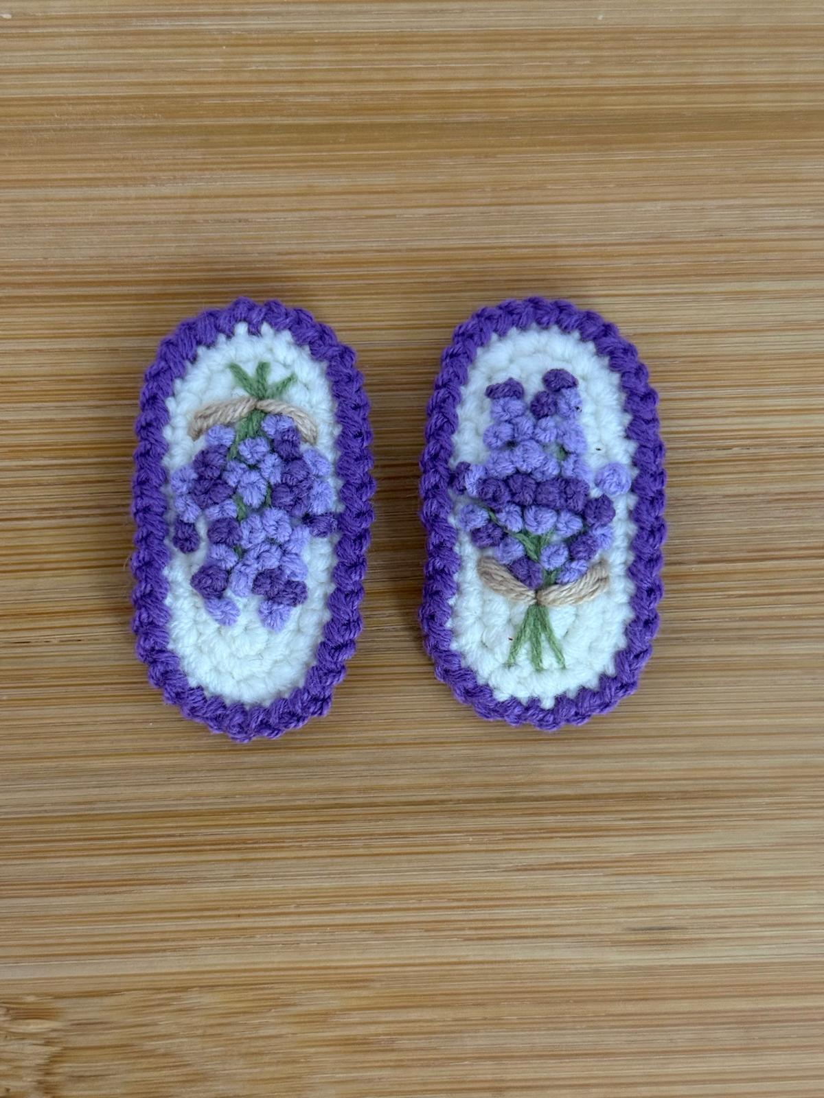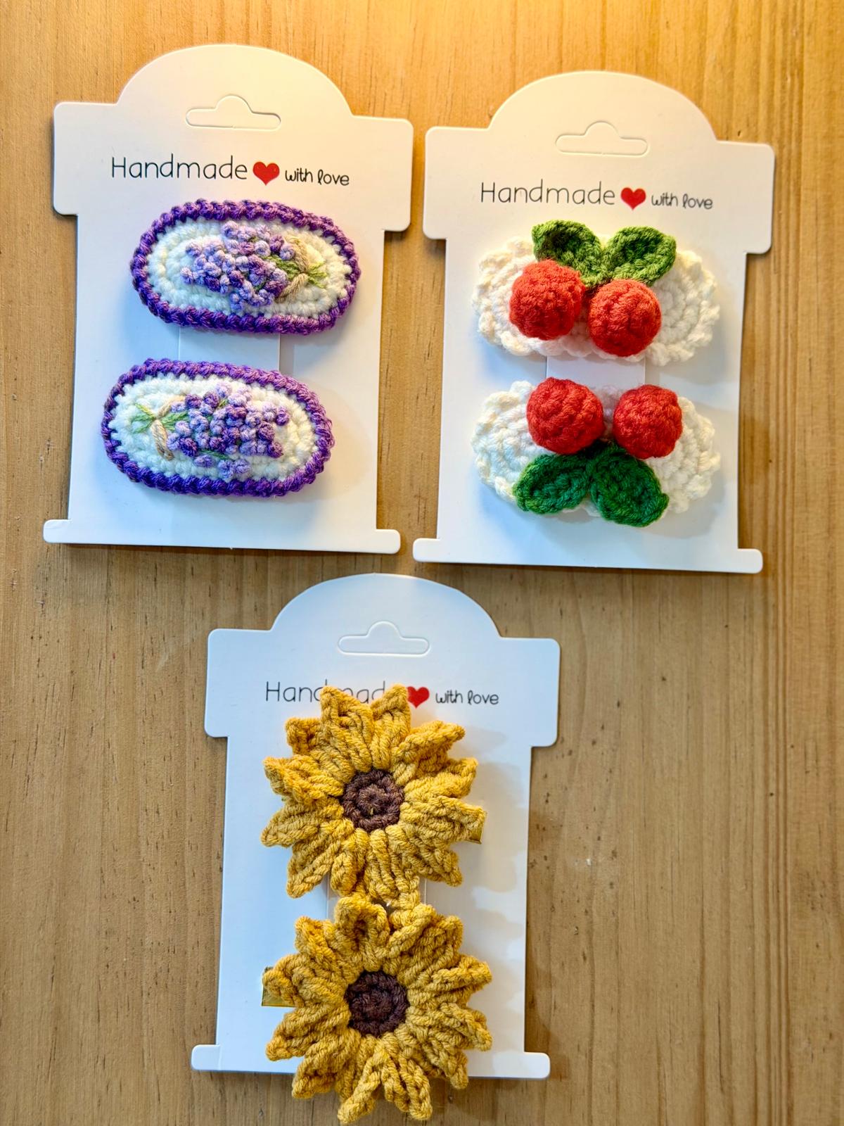 A luxury trio of hand-crocheted snap clips inspired by soft bloom and summer days.