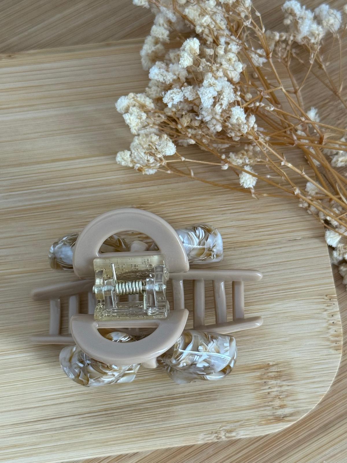 A warm shark claw clip in a rich caramel tone. Crafted from premium eco-friendly acetate with a secure shark-grip hold.