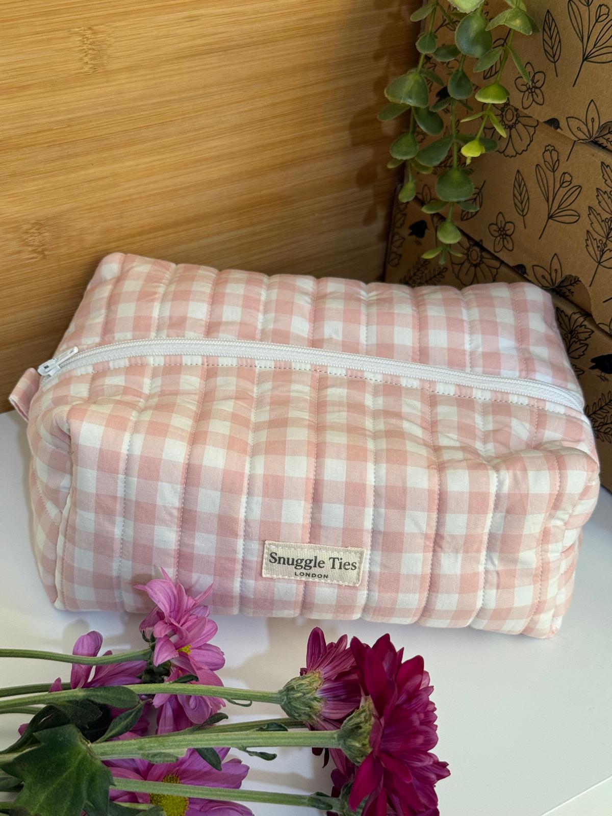 Add timeless elegance to your collection with the Cotton Grace pouch. Handcrafted from premium cotton, this charming pouch features a soft peach pink and white checked design that perfectly blends grace and simplicity.