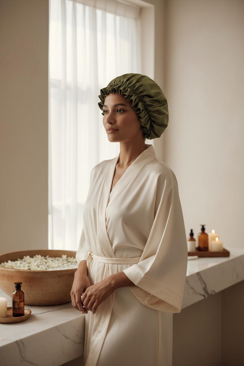 Indulge in luxurious sleep with our Olive Moon complete hair care sleep set in a sophisticated olive green shade.