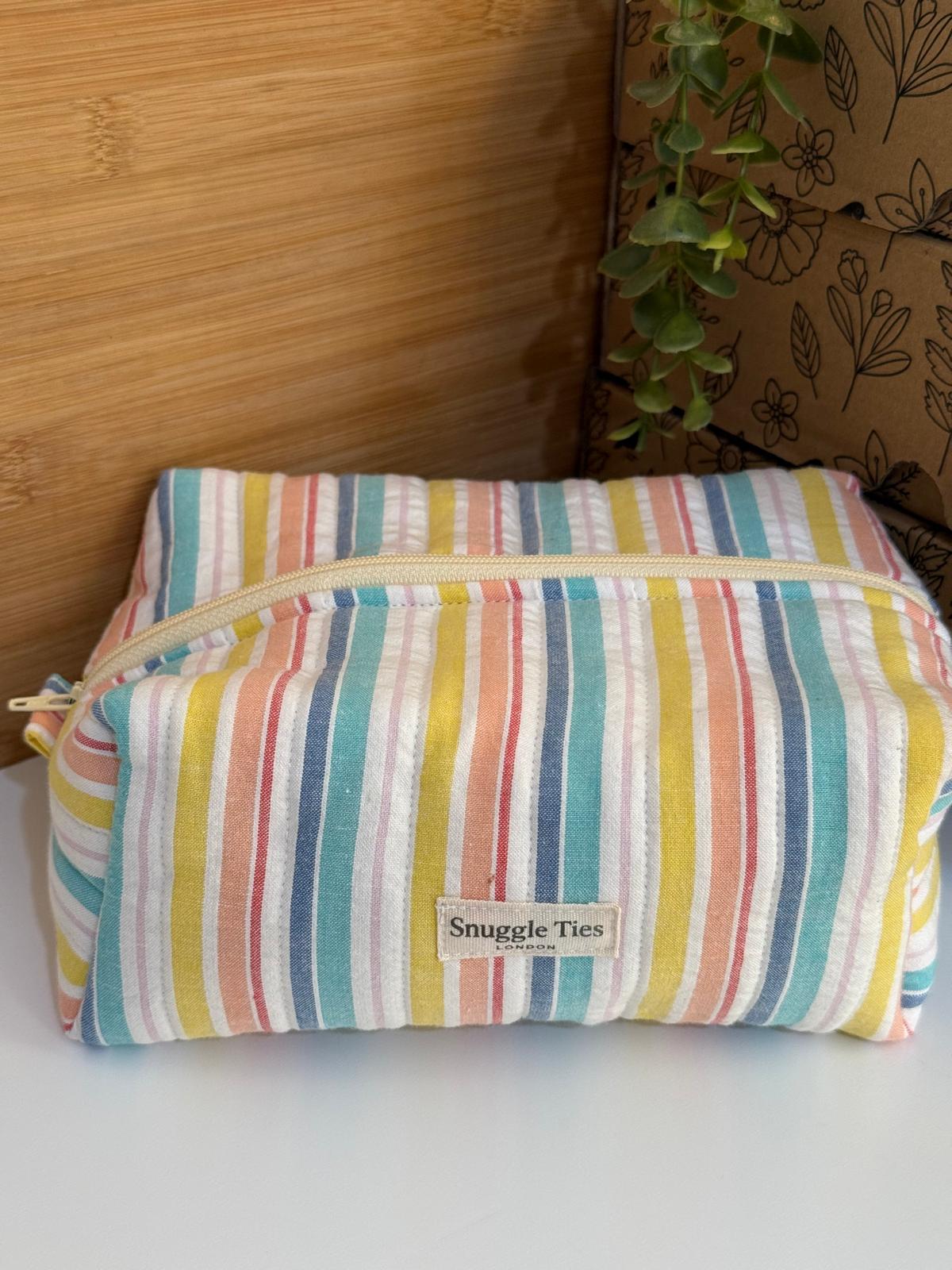 Perfect for storing makeup, skincare, or travel essentials, it's lightweight, eco-friendly, and easy to carry wherever you go. The playful pastel palette adds a touch of joy to your daily beauty ritual.