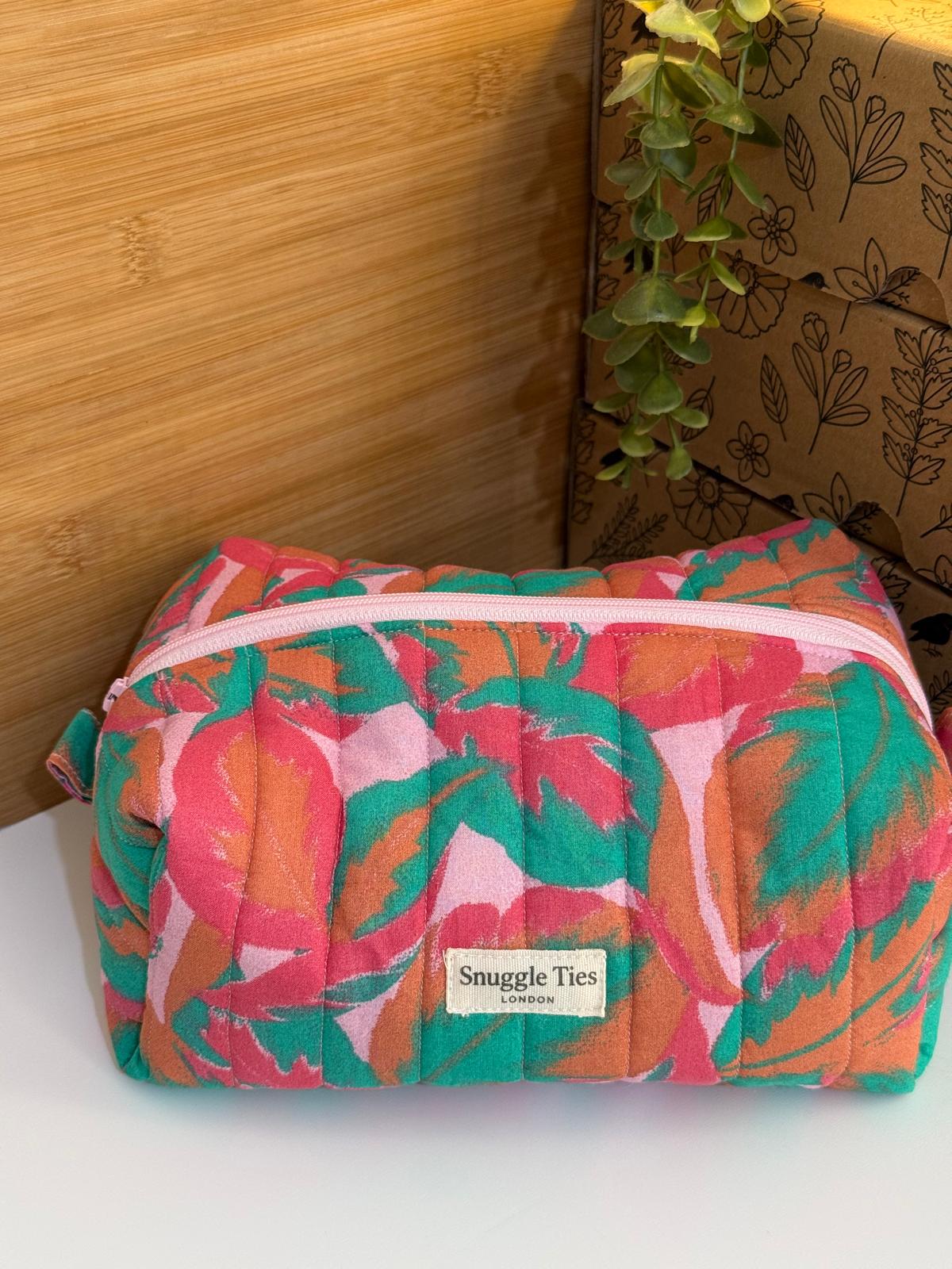 Brighten up your beauty routine with the Wild Crisp cosmetic pouch. Handcrafted from premium cotton, this vibrant pouch features eye-catching red, green, and pink patterns that bring bold energy and playful style to your everyday essentials.